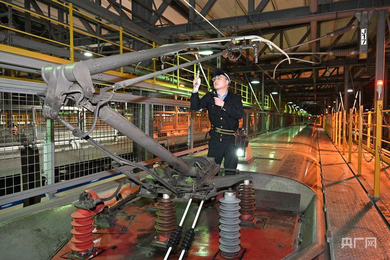 动车组机械师正在对车顶高压设备进行检查(央广网发 马桂福 摄)